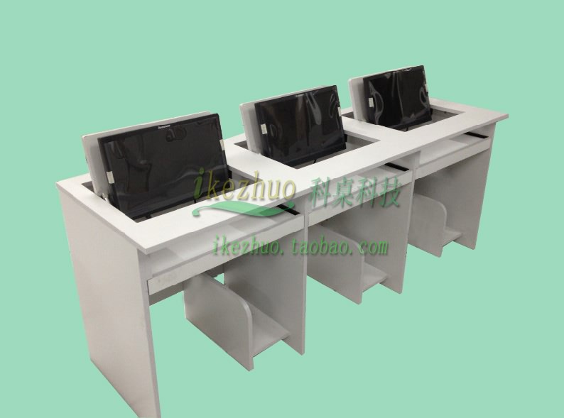 科桌翻轉電腦桌主要應用于各種大型會議室,學術報告廳,計算機教室,多媒體教室、多媒體會議室、多媒體電子教室、多媒體電教室、機房、培訓中心,展廳內及多功能會議廳等。普通教室與計算機教室模式相互切換快速,不阻礙老師與學生之間目光交流