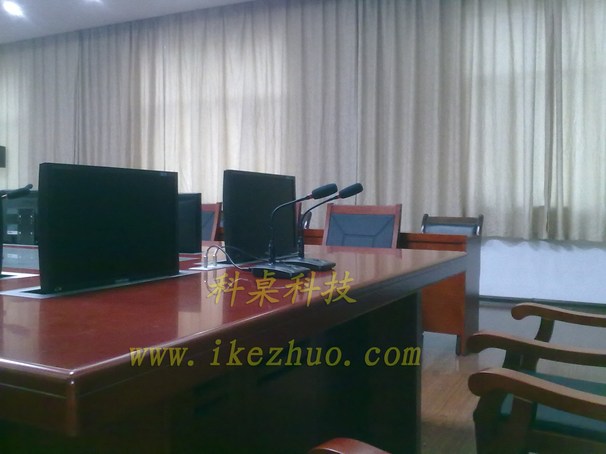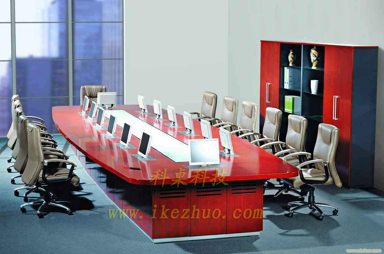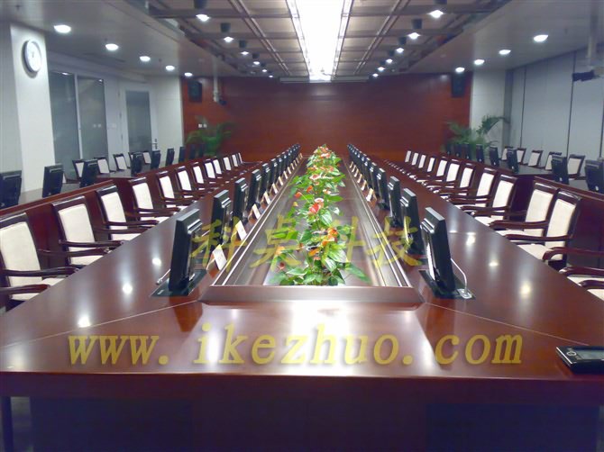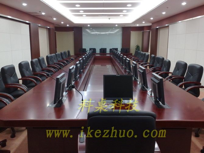 從會議桌下面升到桌面、◆當(dāng)不使用顯示器時,◆升降機(jī)自動下降,◆顯示器隱藏在會議桌內(nèi),◆起到防塵,◆防盜,◆保持桌面平整美觀。