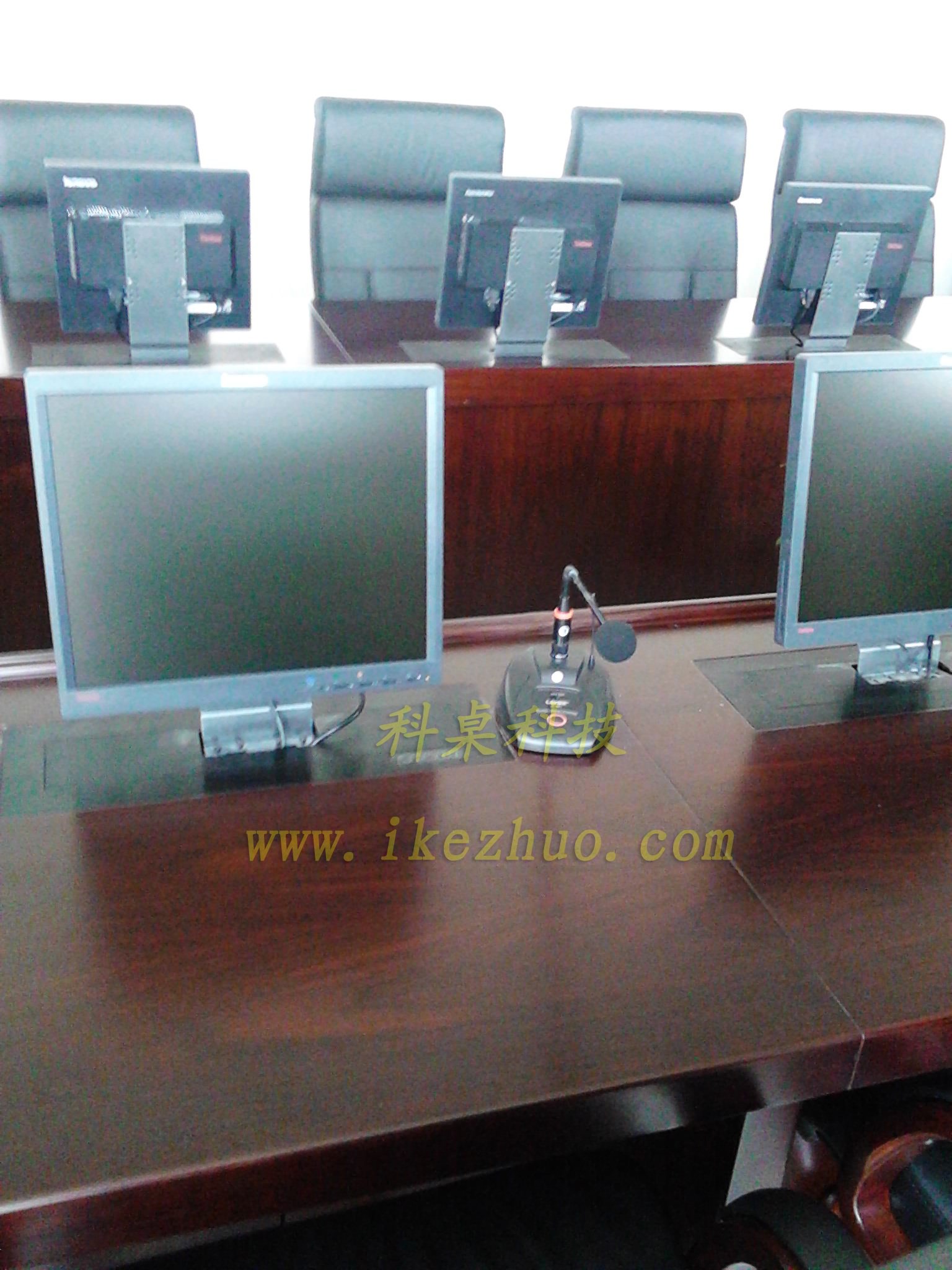 液晶屏升降器介紹:當使用顯示屏時,隱藏在會議桌內部的升降機把顯示屏從會議桌下面升到桌子表面;當不使用顯示屏時,手按或遙控升降機進行下降,顯示屏就會再次隱藏在會議桌內部,防盜、防塵,保持桌表面的整潔和美觀。
